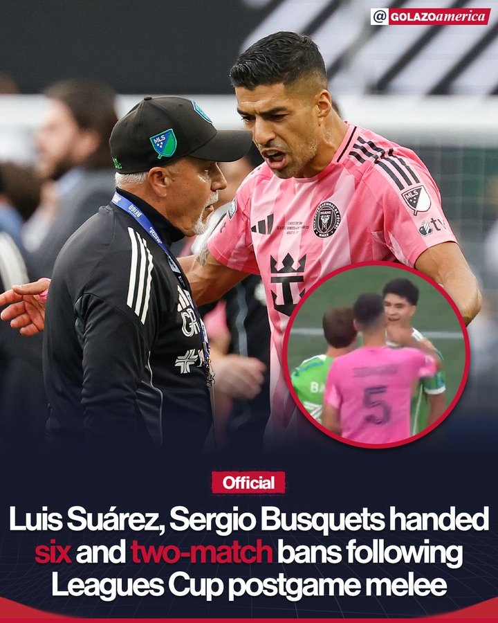 官方:苏牙吐口水被禁赛6场、布斯克茨禁赛2场,只在联盟杯中执行