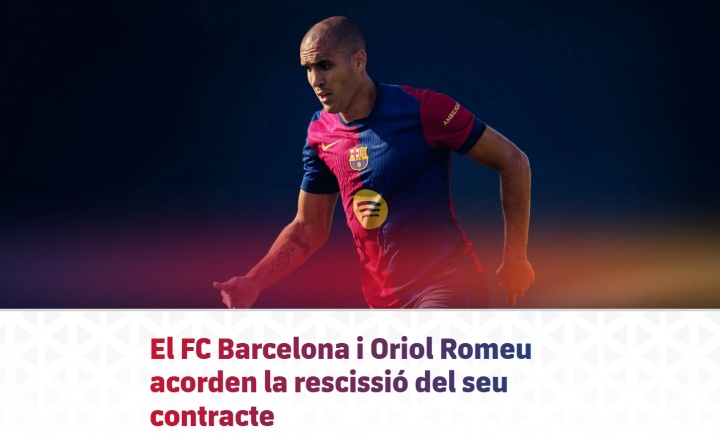 官方消息,巴萨与与奥里奥尔-罗梅乌达成协议解除合同。