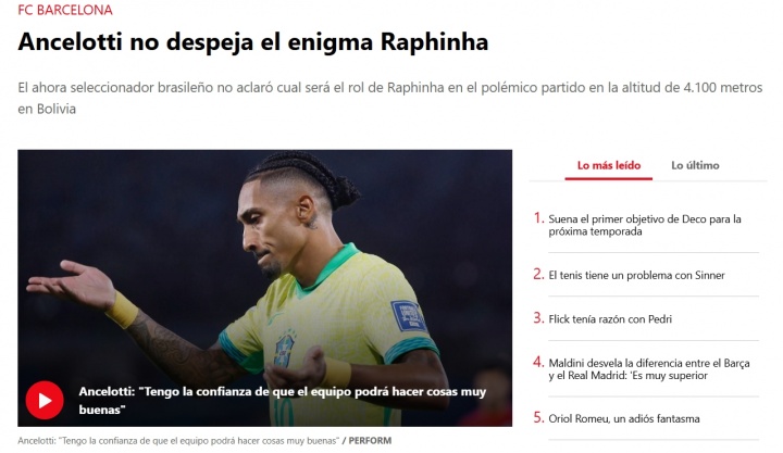 《每日体育报》撰文谈到了今日巴西国家队比赛,并认为主帅安切洛蒂在对待皇马与其他球队球员时存在双重标准。