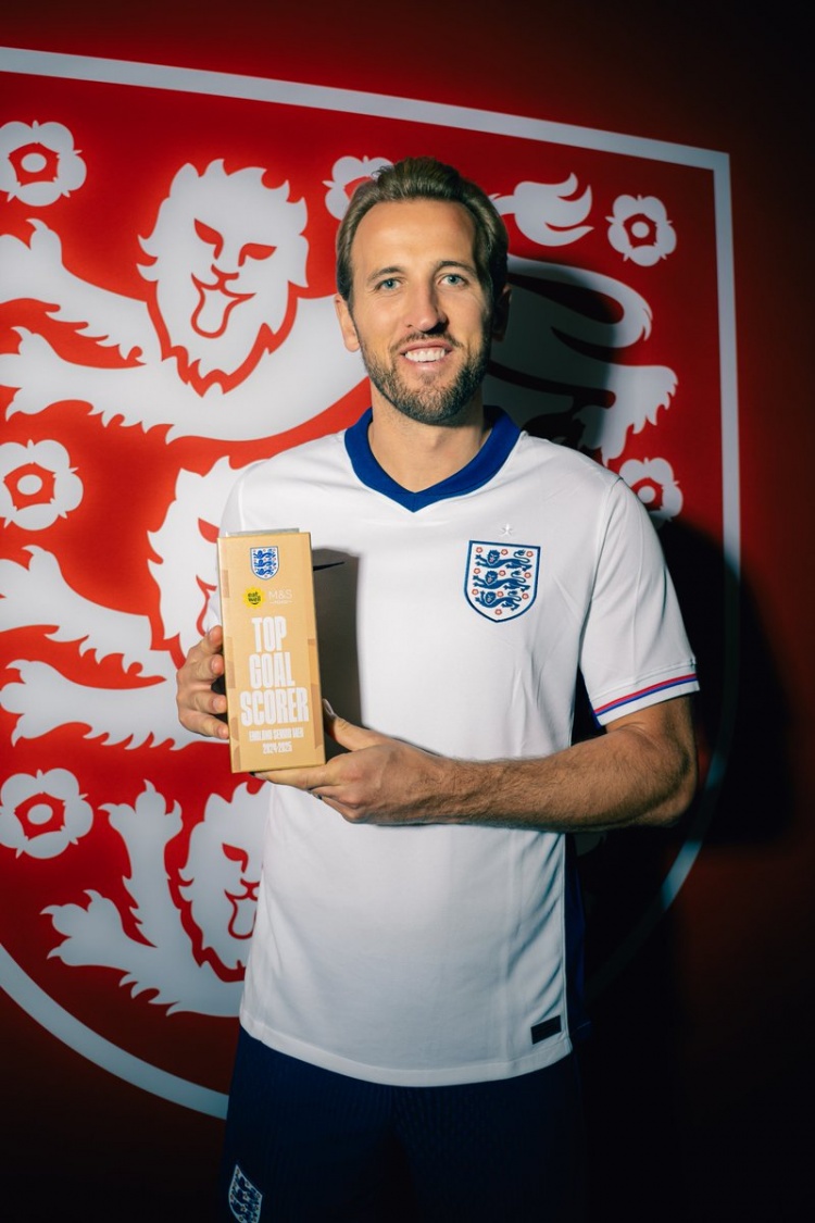 连续6年获奖!官方:凯恩当选英格兰队2024-25赛季最佳射手